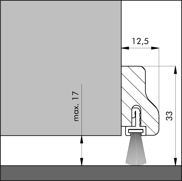 - Toepassing: voor de onderzijde van binnendeuren zonder stofdorpel en geschikt voor toepassing bij schuifdeuren